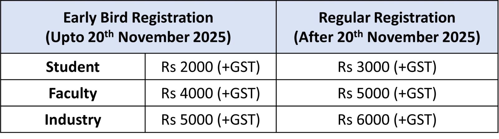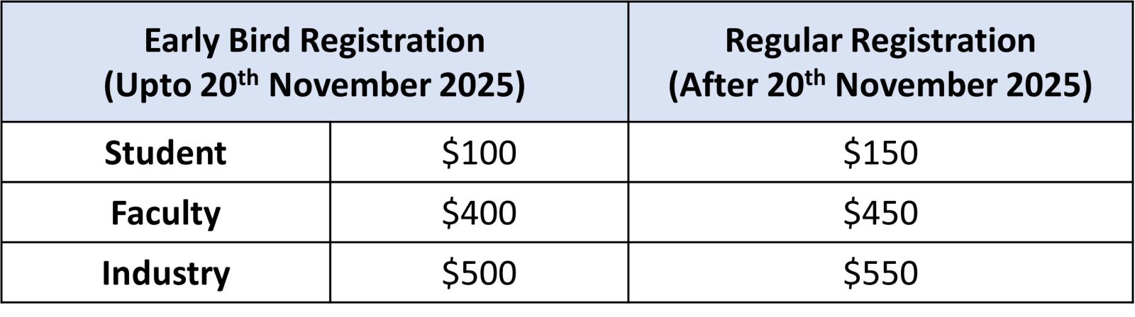 - Regular Registration: After 20 November 2025